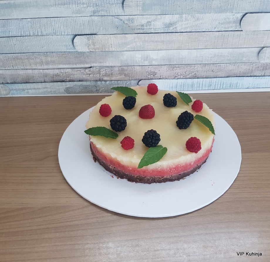 - Torta naj stoji vsaj 3 ure v hladilniku, da se mase strdijo.