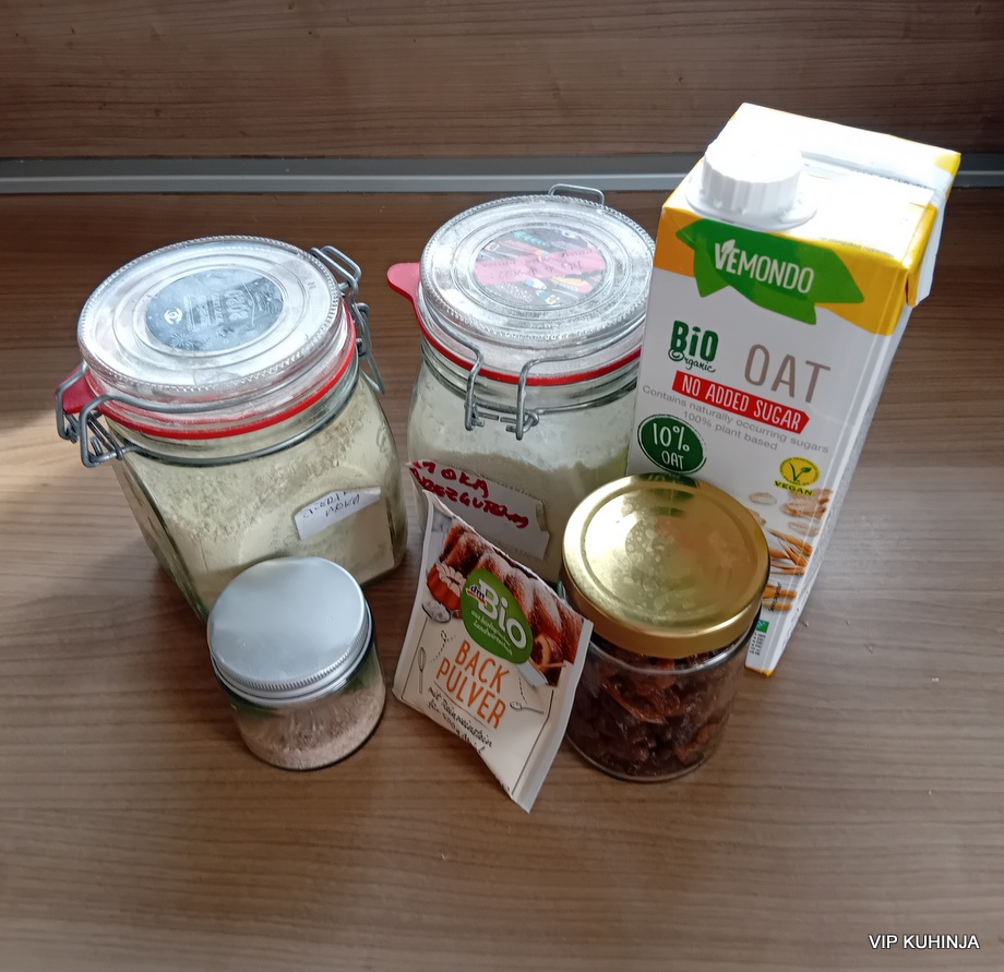 - V posodo odtehtam čičerikino moke in brezglutensko moko.