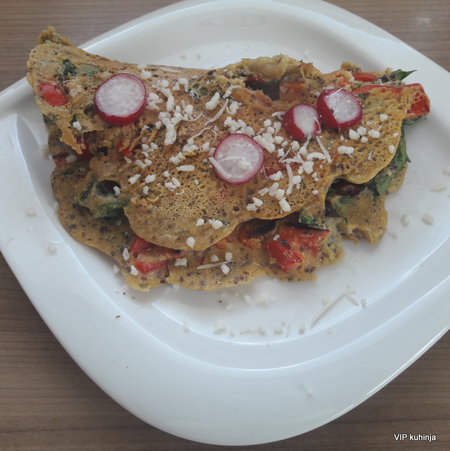 Priprava je hitra in enostavna in je odličen zajtrk ali malica. Narejena je brez glutena, tako da jo lahko uživajo tudi tisti, ki le-tega ne smejo. Za omleto potrebujete samo čičerikino moko, začimbe, vodo ter različno zelenjavo. Meni je najbolj všeč špinača ter rdeča paprika. Odlična je tudi s šparglji.